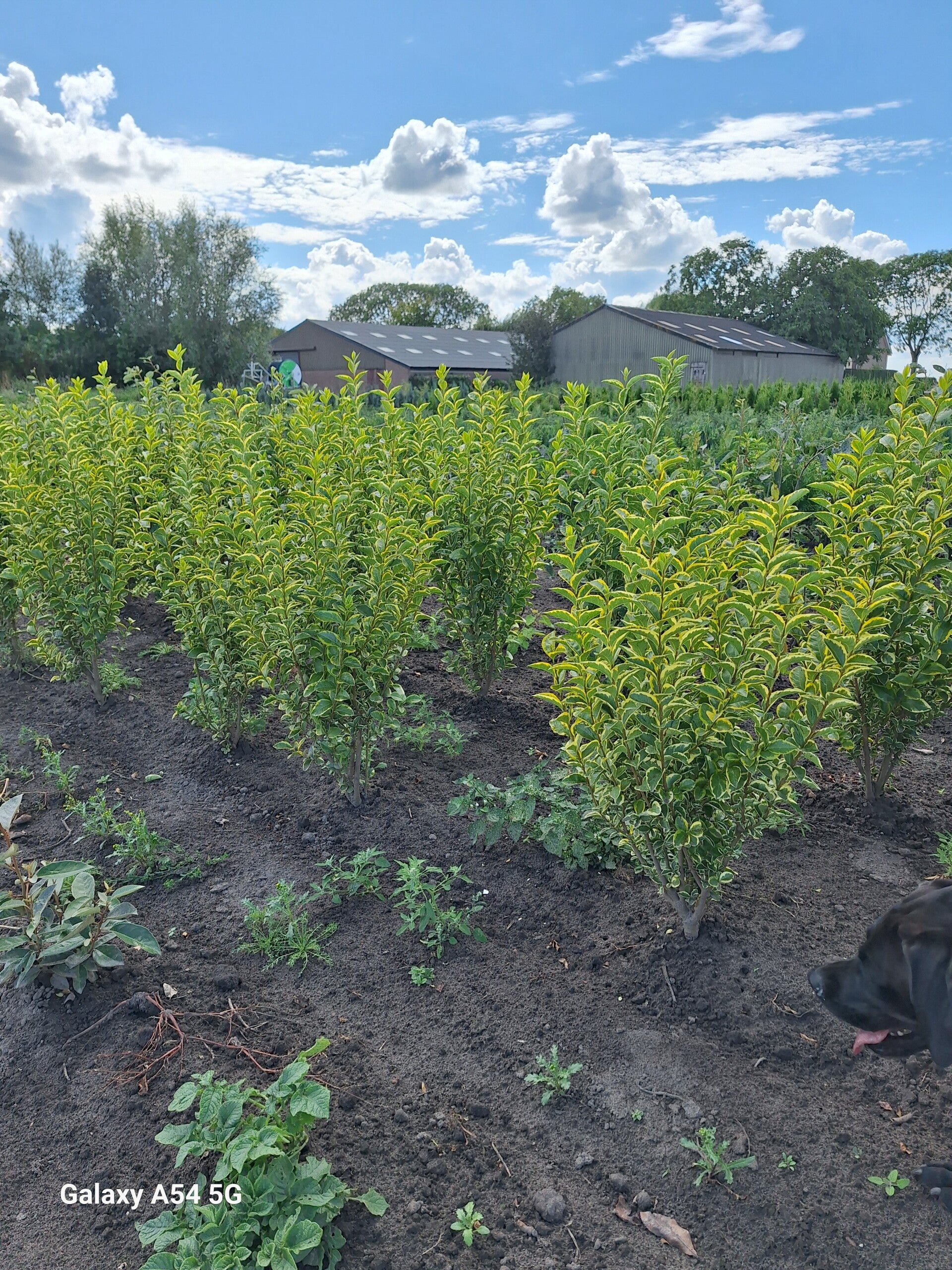 Mooie bonte liguster. De liguster is groenblijvend maar verliest wel iets van zijn blad, maar niet alles. Groeit zon 30 cm per jaar en groeit overal.